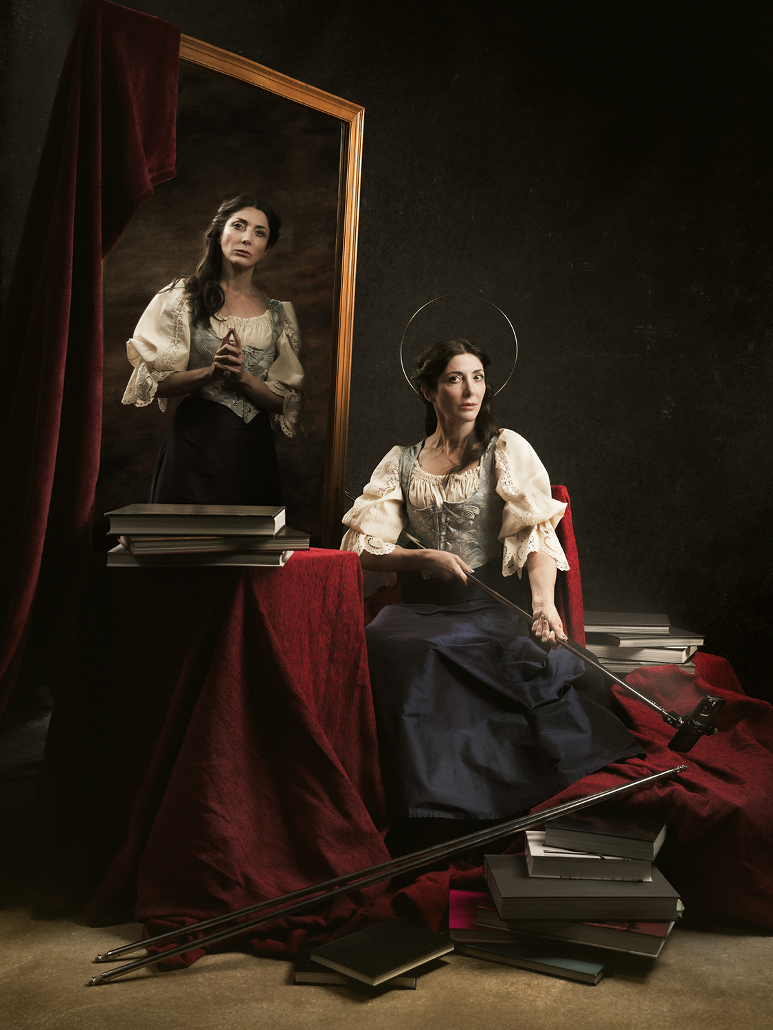 Aquí podéis ver la analogía entre los instrumentos con los que la torturaron a la Santa y los que hoy torturan a los creadores: y el reflejo, en el espejo que muestra al juez, a nuestro peor enemigo, nosotros mismos.